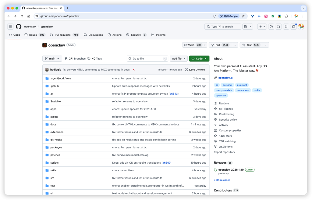 抛开改名的故事,OpenClaw 之所以能让全球开发者疯狂,是因为它切中了 SaaS 时代最大的痛点:控制权。它的核心理念是:Your assistant. Your machine. Your rules.(你的助手。你的机器。你的规则。)与 ChatGPT 或各种在线 AI 助手不同,OpenClaw 是运行在你本地电脑、家庭服务器或 VPS 上的。💻 本地运行:数据不出域,完全由你掌控。🔗 多平台连接:它不仅支持 WhatsApp、Telegram、Slack,最近还新增了Twitch和Google Chat插件,国内可以通过飞书机器人接入飞书消息。🔒 安全加固:针对“提示词注入”等风险,新版本提交了 34 个安全相关更新,并引入了机器可检查的安全模型。